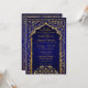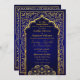 Bollywood or Arabian Nights theme wedding invitation card in navy blue ombre with gold foil accents.