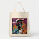 The printing came out very well, better than I had anticipated. The natural color fabric is sturdy with strong seams and comfortable handles. This tote fits easily over my shoulder. As it is filled, the bottom flattens out--very cool! I would buy this product again. This grocery tote holds a lot of groceries! The image quality was very good. The colors were a little darker than I had expected. The darkness may have been due to printing on a natural color fabric rather than on white. The cat design is attractively centered on the tote. The spirit of the design is very lively, just as it appears on the Zazzle website.