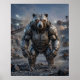 Massive and intimidating, this bolted bear artwork features thick steel hull plating, oversized bolts, armored shoulders, heavy claws, and glowing eyes built for raw industrial strength. Standing in a harsh iron quarry of broken stone walls, rusted machinery, conveyors, gravel dust, and distant floodlights, the bear commands the scene with unstoppable presence. Perfect for workshops, garages, offices, and masculine interiors. Ideal for lovers of bears, heavy machinery, and rugged statement décor.