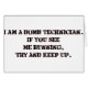 I am a bomb technician. if you see me running, try and keep up" in red and black distressed stencil lettering
