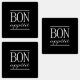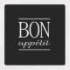 BON APPETIT Food Labels. Waterproof black sticker sheets with a white BON APPETIT food quote text print. Available in square and round shape.
