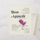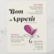 These vintage style 8.5" x 11" wedding dinner paper sheet menus black lettering with a stylised heading, "Bon Appetit," in large black letters with a magenta heart accent on an cream background. The menu has placeholders for 2 appetizers, 2 entrees, and 2 desserts and the wedding couple names.