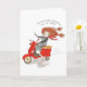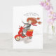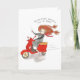 A bon voyage card starring Chapel Smith a cute, redhead girl who travels the globe driving a red vespa or motorcycle with a yellow seat, a cup of coffee in her right hand with steam rising from it, while her left hand is driving the vespa, wearing sunglasses and a red scarf blowing behind her in the wind as she drives along on her travels around the world and the globe. Chapel is saying “These people sure know how to travel.” A perfect bon voyage gift for anyone going a trip to a city, country, anywhere in the world or around the globe.