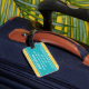 Personal your luggage or travel bag with this cute yellow and blue luggage tag. Bon Voyage! Perfect for cruises, road trips and long flights!