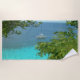 The crystal clear water is in two shades of blue. You can feel the nice breeze and warm sun.