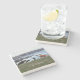 The coasters are gorgeous, a quality feel and heavy weight. They look like a precious archeological find. A rustic stone juxtaposed with a modern floral black and white print. I like the way the print goes slightly imperfect on the cut stone edges giving them a kind-of natural beauty.