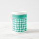 A stylish Bone China Mug, with a houndstooth check pattern in trending Emerald Green and white. There is a plain band at the top of the pattern which you can personalise with a name or some text - or leave blank.