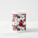 Bone china mug shown in a pretty red rose vine print.