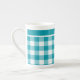 Bone China Mug, Teal and White Check Gingham Bone China Mug