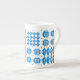 A chic Bone China Coffee Mug, with a pattern of traditional Welsh Tapestry motifs in Bright Blue on a White background. This pattern will fit all Mug sizes.