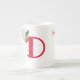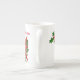 Festive personalised bone china Christmas mug printed with pretty poinsettia floral design and name initial. Great Christmas gift idea for friends and family.
