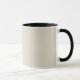 A light, solid colour "Bone White" and Black Combo Mug. Bone White is an off-white; a colour similar to light beige. Click on "Customise" to change colour or to add a pattern or design. Product Hex Code: #e3dac9