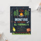 Invite your friends to a bonfire to celebrate your birthday with these adorable woodsy themed invitations featuring wooded trees, a bonfire, grass, lantern, and all the cookout essentials like hot dogs and s'mores.