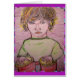 a young boy playing toy bongos from a coloured pencil sketch. also with "bongo beats" slogan!