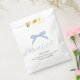 Say merci beaucoup in style with this elegant French-inspired baby shower favour bag. Featuring soft dusty blue tones, a blue bow and graceful script, this design pairs perfectly with any Parisian or coquette-themed celebration.