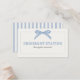 Create a Parisian baby shower escape with this elegant French-inspired baby shower table place card — perfect for an elegant patisserie table setting. Featuring soft dusty blue tones, gentle blue bows, and graceful script, this design pairs perfectly with any Parisian or coquette-themed celebration. The back showcases a matching blue and cream striped pattern for a polished, boutique look with a coquette edge.