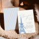 Say bonjour bébé with this chic and elegant Paris-themed baby shower invitation. Designed with soft blush tones, a dainty Eiffel Tower illustration tied with a bow, and modern script typography, this invite is perfect for celebrating a baby girl in Parisian style. The back features classic dusty blue and cream stripes, giving it a polished, boutique feel with a coquette edge.