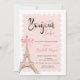 Bonjour Bébé Eiffel Tower Bow Striped Baby Shower Invitation