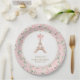 Amaze your guests with this elegant baby shower paper plates featuring a cute little Eiffel tower with pink flowers.