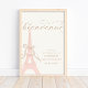 Say bienvenue with this chic and elegant Paris-themed baby shower welcome sign poster, available for instant digital download. Designed with soft blush tones, a dainty Eiffel Tower illustration tied with a bow, and modern script typography, this welcome sign is perfect for celebrating a baby girl in Parisian style.