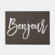 Welcome your guests with this modern design featuring the phrase "bonjour" written in an off white script. Background can be changed to any colour