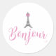 Bonjour-Eiffel Tower Bow Unique Classic Round Sticker