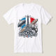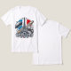 Celebrate French flair with bold Bonjour tee- featuring iconic Parisian symbols and flag colors.