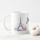 This beautiful Paris-inspired mug features the Eiffel Tower with floral details, a thin tricolor rectangle inspired by the French flag, and the text "Bonjour Paris" in elegant typography. Ideal gift for someone who admires the City of Light. Make it special adding your name or a loved one's.