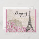 Bonjour Vintage Eiffel Tower Collage with Flowers Postcard