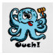 A drawing of a blue octopus bonking itself saying "ouch!"