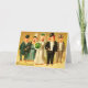 Custom cute and funny Vintage Happy New Year Postcard in french depicting a Bride and Groom with Family. The bride is carrying a bouquet of shamrocks .