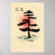 Shown is a black and white sketch of a classic bonsai with "Japan" in kanji characters.