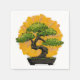 A beautiful illustration of a bonsai tree that sits in a black pot against a bright yellow circular background.