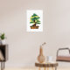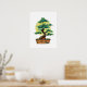 traditional watercolor painting of a bonsai tree in a brown pot in front of the sun as a decorative poster print.