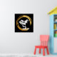 Artistic illustration mixed with a faux gold circle and black bonsai.