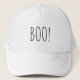 Boo black & white minimalist simple spooky handwritten typography funny cute Halloween Trucker Hat.