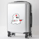 The stick looks amazing. Unfortunately, it would not stick on our suitcase as it was textured. When we found a non-textured (smooth) suitcase, the sticker stuck and looks great. The printing looked awesome.