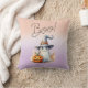 At its heart, the pillow features an irresistibly cute ghost, adorned in an enchanting witches hat and nestled beside a cheerful jack-o'-lantern. The ghost's friendly presence and whimsical charm add an element of merriment to the design. Playfully, the pillow spells out "Boo" in a lively script font, inviting smiles and laughter.