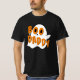 White Halloween ghost t-shirt with white ghost and orange text "boo daddy". Great Halloween party / trick or treat shirt for fathers.