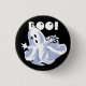 Cute Ghost pin features our original digital art of a spooky ghost with the word boo! in white on a black background. Have some spooky fun this Halloween with our ghostly gifts. This spooky spectre is perfect for anyone who loves to be scared, loves Halloween, loves trick or treating and ghosts in general. Have a haunted Halloween!