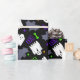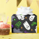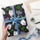 Boo Ghosts Halloween wrapping paper. With 4 different ghosts, bats and other Halloween motifs in classic Halloween colours of purple, orange and green. You can make the ghost pattern smaller or larger on the wrapping paper.