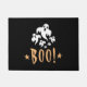 A ghost ornament and the "Boo" lettering are featured on this Halloween doormat.