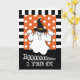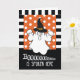 If Booo is spoken, that means it will be a spooktacular Halloween! Cute orange with white polka dots fill the background, with black and white stripes framing it. A ghost is central to the card with Boooooooo is spoken here on the front.