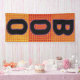 Colourful and festive orange polka dot background with black and purple text that says "BOO" Fun way to decorate your walls with a festive Halloween banner. Or change this design to an outside banner and proudly display in your yard.