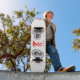 A spraycan skull on a concrete wall sticks his bright red tongue at one and all.