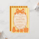 Little boo cute ghost Halloween baby shower invitation cards template instant download, mustard orange stripes Halloween baby shower invitations, wavy handdrawn border Halloween baby shower, cute baby ghost whimsical baby shower invitations, retro stripped baby shower invitations