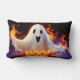 "Boo-tiful Ghost Pillow" is a charming and festive Halloween throw pillow design that combines simplicity and spooky fun. The pillow features a black background with a friendly white ghost in the centre, playfully saying "Boo!" The ghost is surrounded by small, cheerful orange pumpkins around the edges, creating a delightful contrast against the dark backdrop. This design is perfect for adding a touch of Halloween spirit to your living room or bedroom, making it a cosy and inviting decoration for the spooky season.