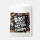 Add a dash of sass and a sprinkle of spooky fun to your party with this Boo! Witch Better Have My Candy Halloween favour bag. Designed with a bold white font on a black background filled with pumpkins, skulls, and candy illustrations in orange and purple, it’s perfect for handing out treats, small toys, or festive goodies. A stylish choice for trick-or-treating, Halloween parties, or witch-themed celebrations.