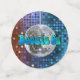 Pack of 60 small, medium and large pieces of confetti with an image, on both sides, of blue, green, purple and red disco lights, a gleaming mirrored disco ball, and “Boogie On” in blue and green 70s-style lettering. A perfect special touch to add to your Disco 70s party décor! See matching invitation, envelope, favour bag, favour box, favour tag, gift bags, label, square sticker, custom-cut vinyl sticker and wrapping paper. See the entire Disco 70s Confetti collection in the DECOR | Confetti section. This product is not associated or affiliated with the original copyright holder.