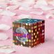 Square classic-style favour box with an image of red, orange, yellow, green and blue disco lights, a gleaming mirrored disco ball and “Boogie On” in red, orange and purple lettering. See the entire Disco 70s Favour Box collection in the PARTY FAVORS section.